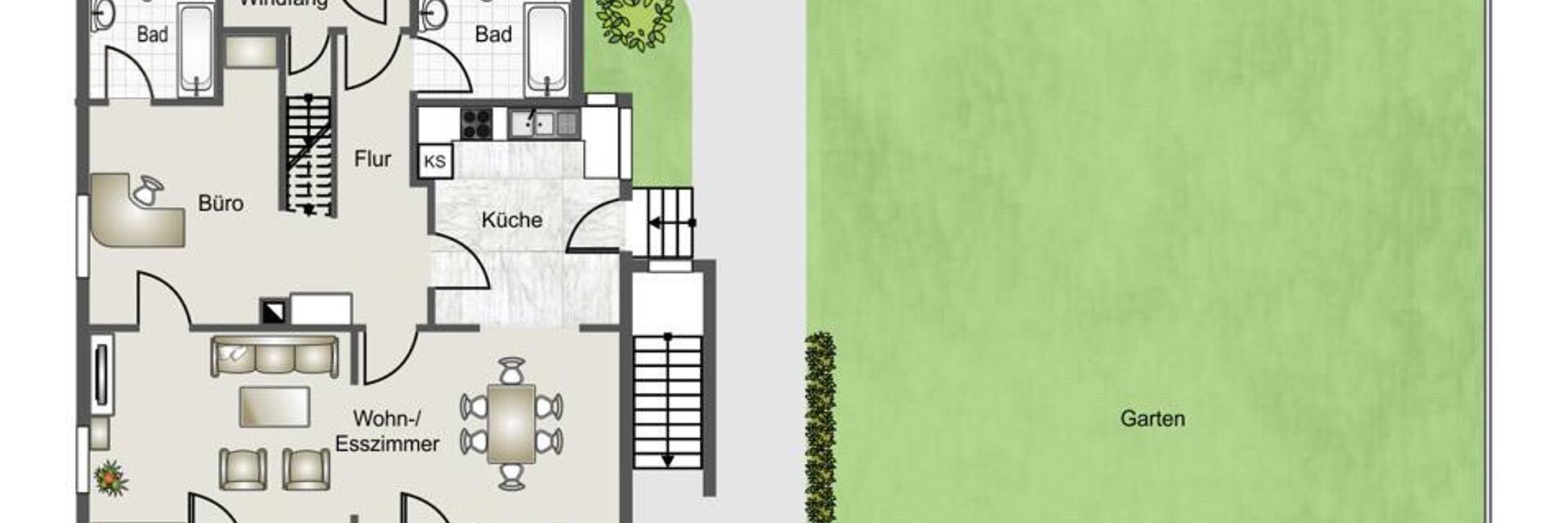 Im EG und OG ist bereits eine Küche und ein Bad sowie im EG ein weiteres Gäste -WC installiert.