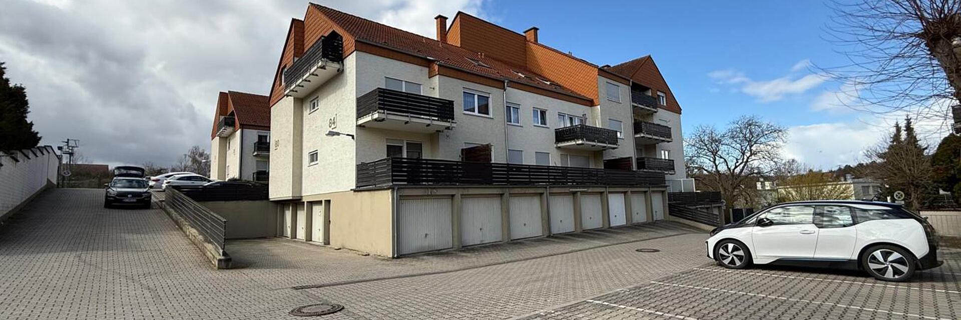 Die gesamte Wohnanlage ist gepflegt und eine längere Garage, sowie ein direkter Zugang von dort zu einem eigenen Kellerraum, sowie zum Treppenhaus, sind ein großer Vorteil an Regentagen. Bringen Sie ihren Einkauf "trocken" in die Wohnung. Ein kurzweiliger Parkplatz vorm Haus kann dafür auch allgemein genutzt werden.